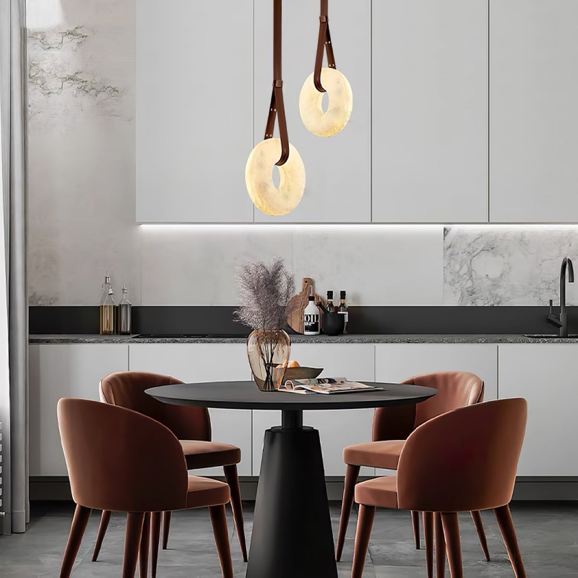 Luste Alabaster Chandeliers Ring Leather Strap Version B