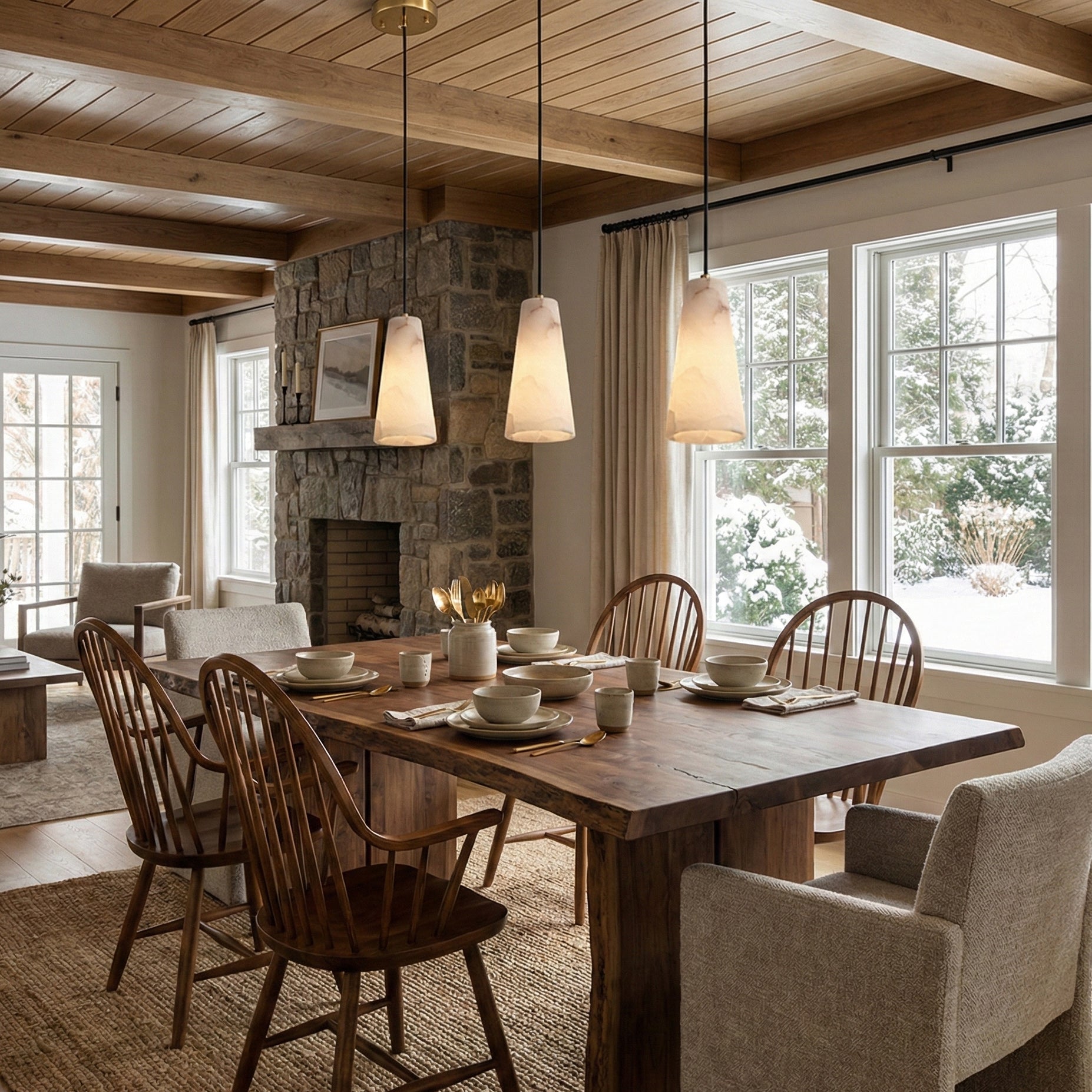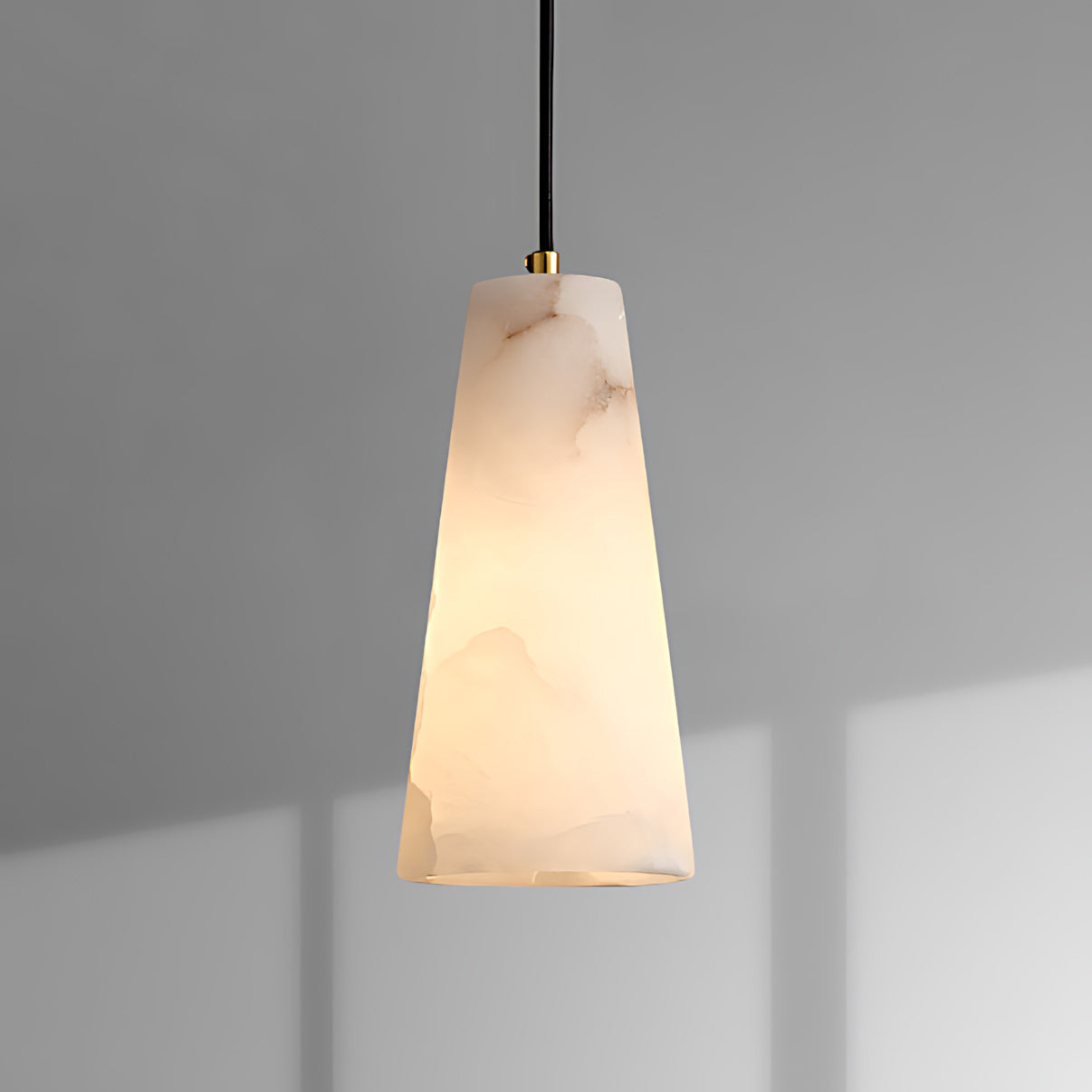 Crafted from natural Spanish alabaster, the Capus Alabaster Pendant Lamp softly diffuses a warm, ambient glow. Its refined conical silhouette and smooth, translucent texture bring organic elegance to kitchens, dining areas, or living rooms, bedroom.