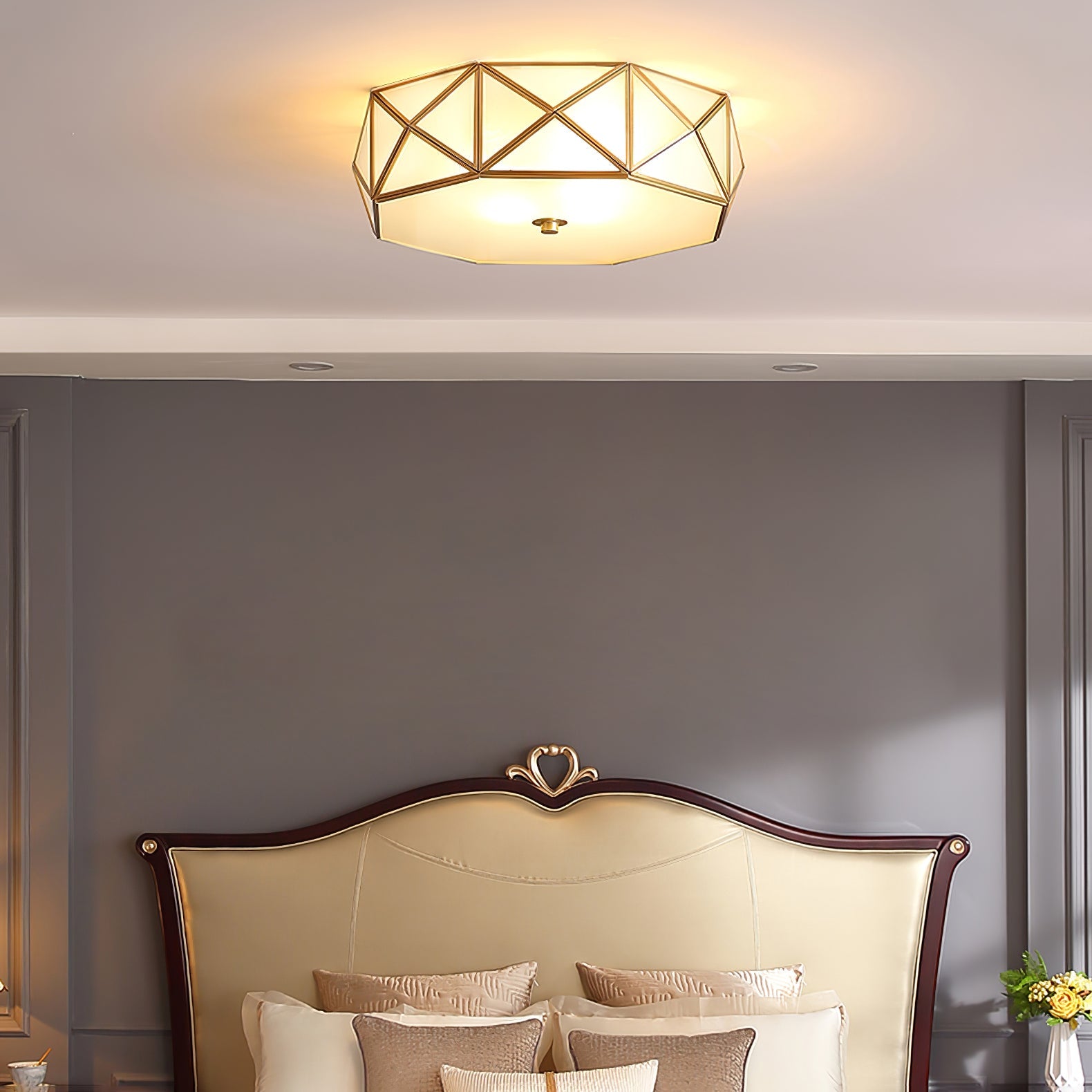 Coloreth Geometric Shaped Brass Glass Flush Ceiling Light
