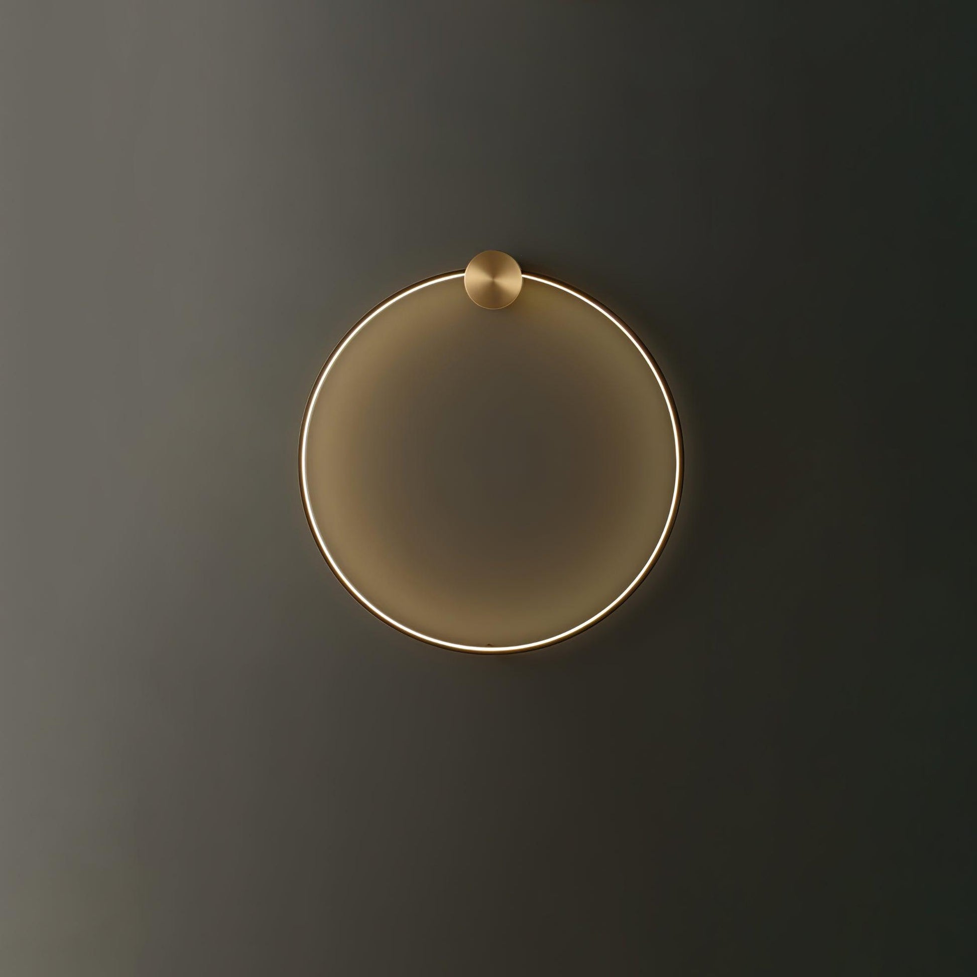 This ring-shaped wall light features a brushed brass finish and integrated LED, creating a warm halo effect on any wall. Its minimalist circular form makes it a versatile choice for bedrooms, hallways, or living areas, adding both ambient glow and refined style.