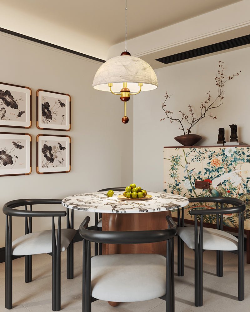 Varaeia Traditional Elegance Bloom Fabric Wood Pendant Lamp