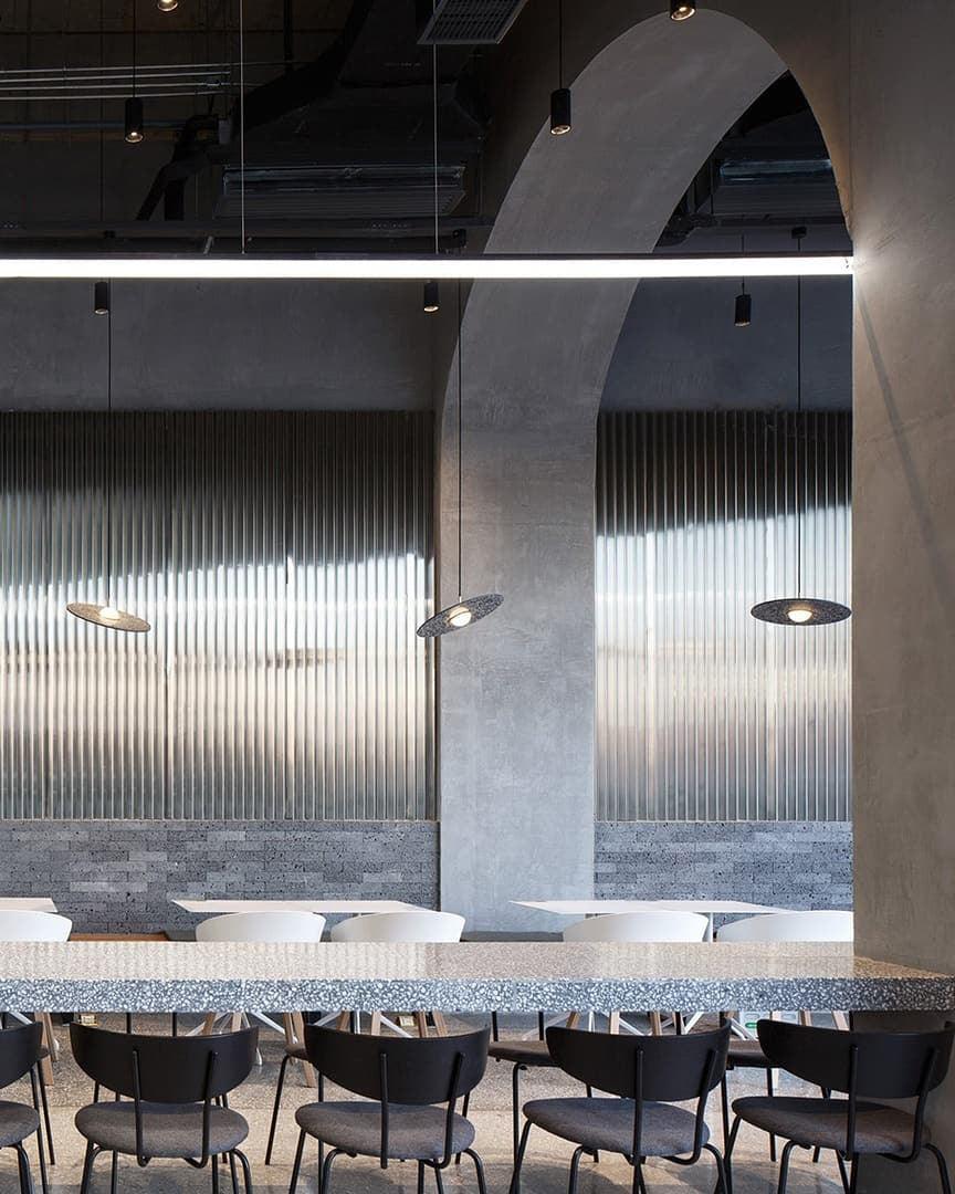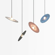 The Planet pendant light is crafted from terrazzo with brass accents and an integrated LED light source. Available in black, white, and red, it brings a modern touch to any living space.