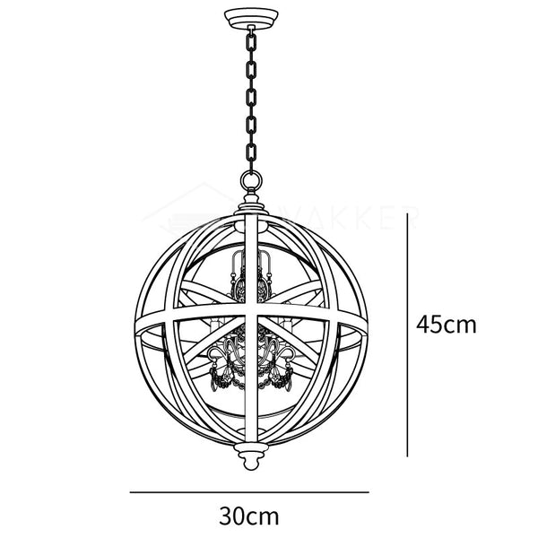 The Retro Globe Weathered Chandelier combines weathered wood, rusted metal, and crystals for a stunning blend of rustic and industrial styles. A wooden globe encases a rusted metal orb, housing a scroll metal frame accented with crystals in the center. The distressed finish enhances its vintage appeal, and when lit, it creates a warm, soothing ambiance with a touch of glam from the clear crystals.