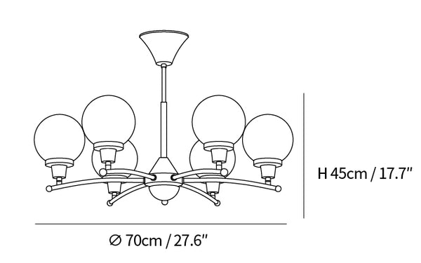 6 Heads Size: Dia 70cm x H 45cm / ∅ 27.6″ x H 17.7″