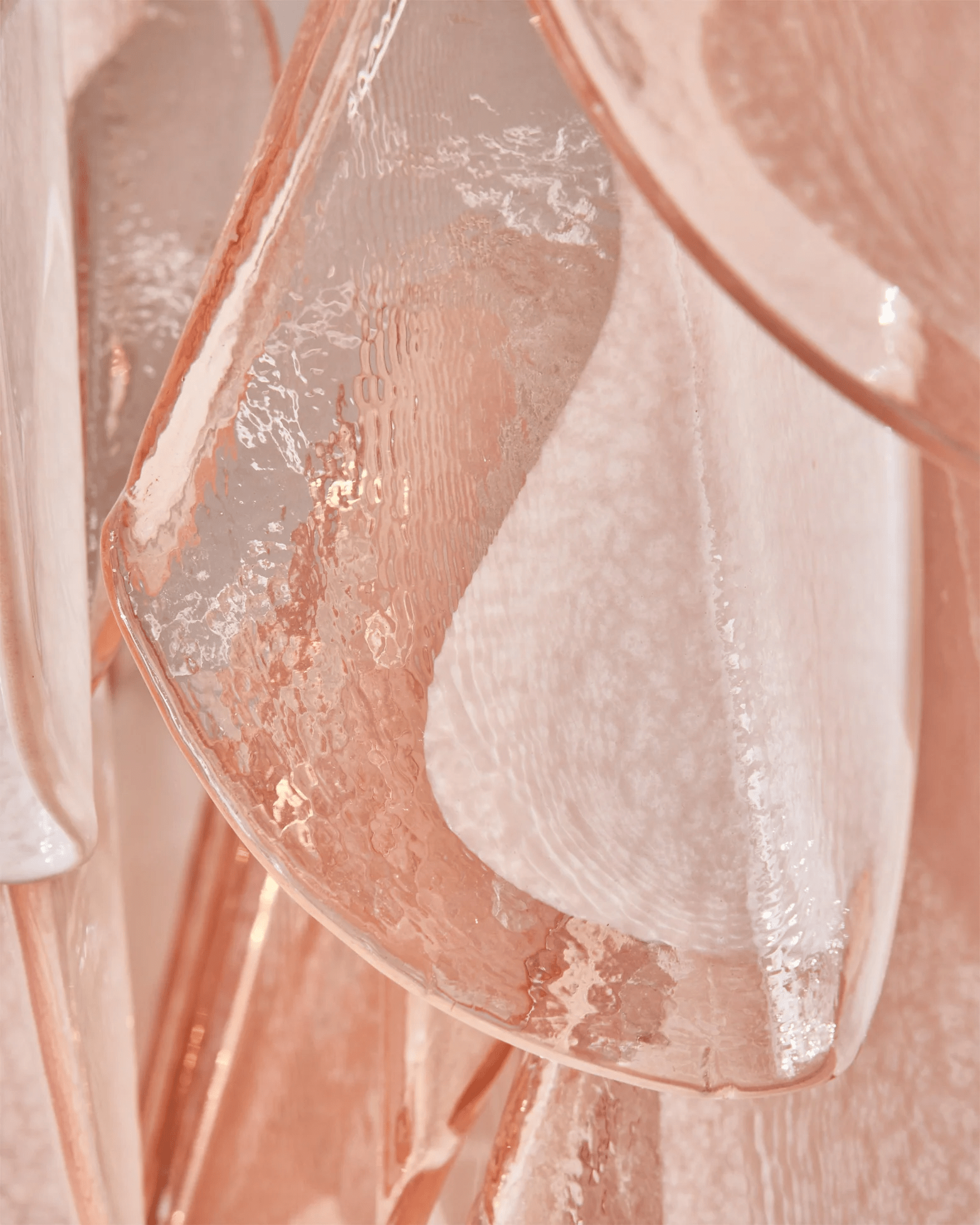 Layered amber Murano glass oval drops create a chandelier that glows with a soft golden light. Perfect for dining rooms, foyers, or statement ceilings, this piece adds vintage-inspired warmth and luxury to sophisticated interiors, infusing every space with inviting ambiance and subtle artistry.