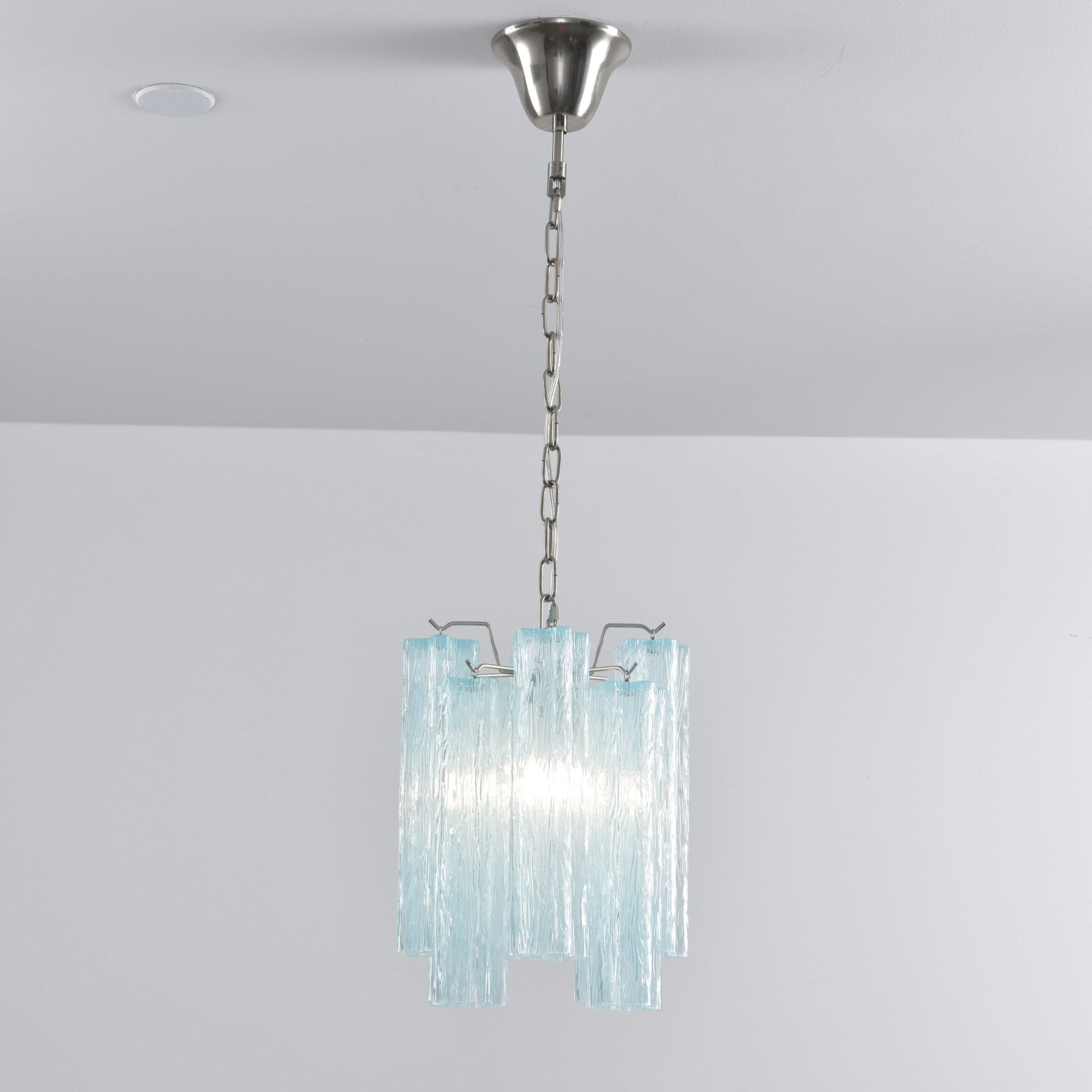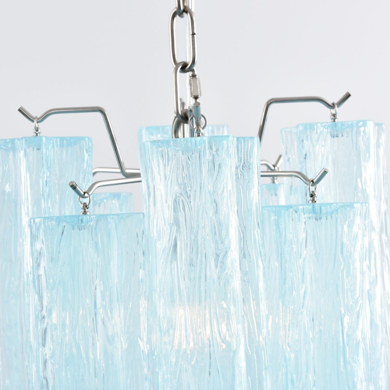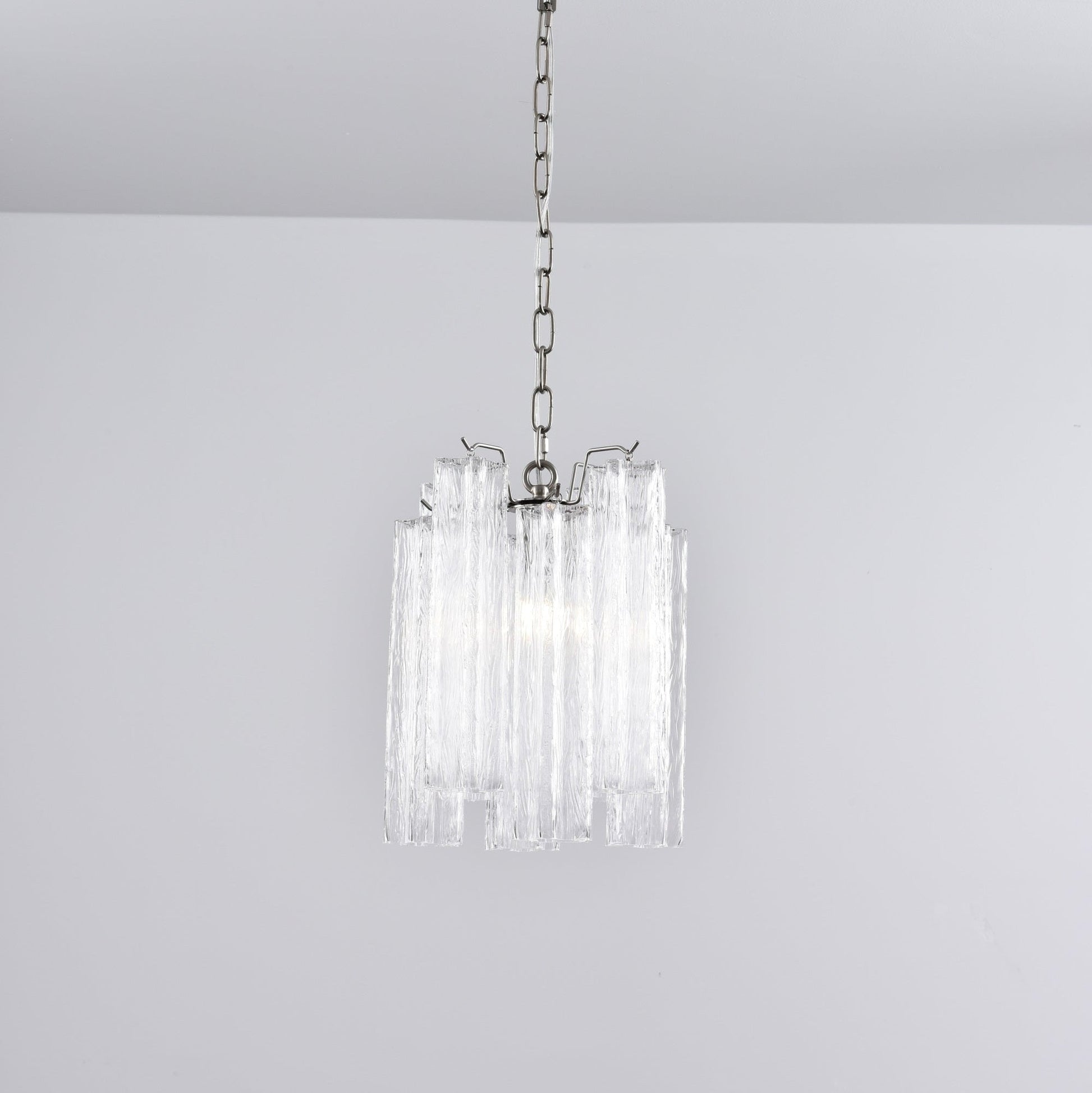 This compact chandelier features hand-pulled glass rods with a pink-to-clear gradient, offering a gentle glow and artisan-crafted elegance. Perfect for small spaces or clustered arrangements, it adds a touch of refined charm to any interior.