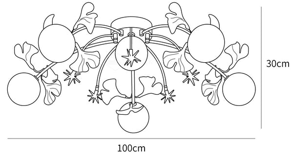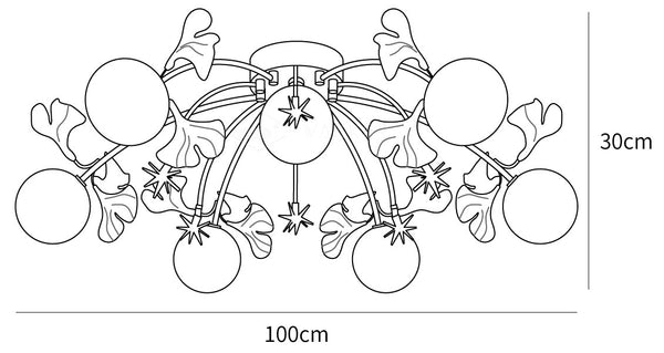 The Lustra Ceiling Lamp features a stunning Ginkgo-inspired style with elegant glass globes. Its strategically placed G4 light sources provide soft, reflective lighting, making it ideal for living or dining room spaces.