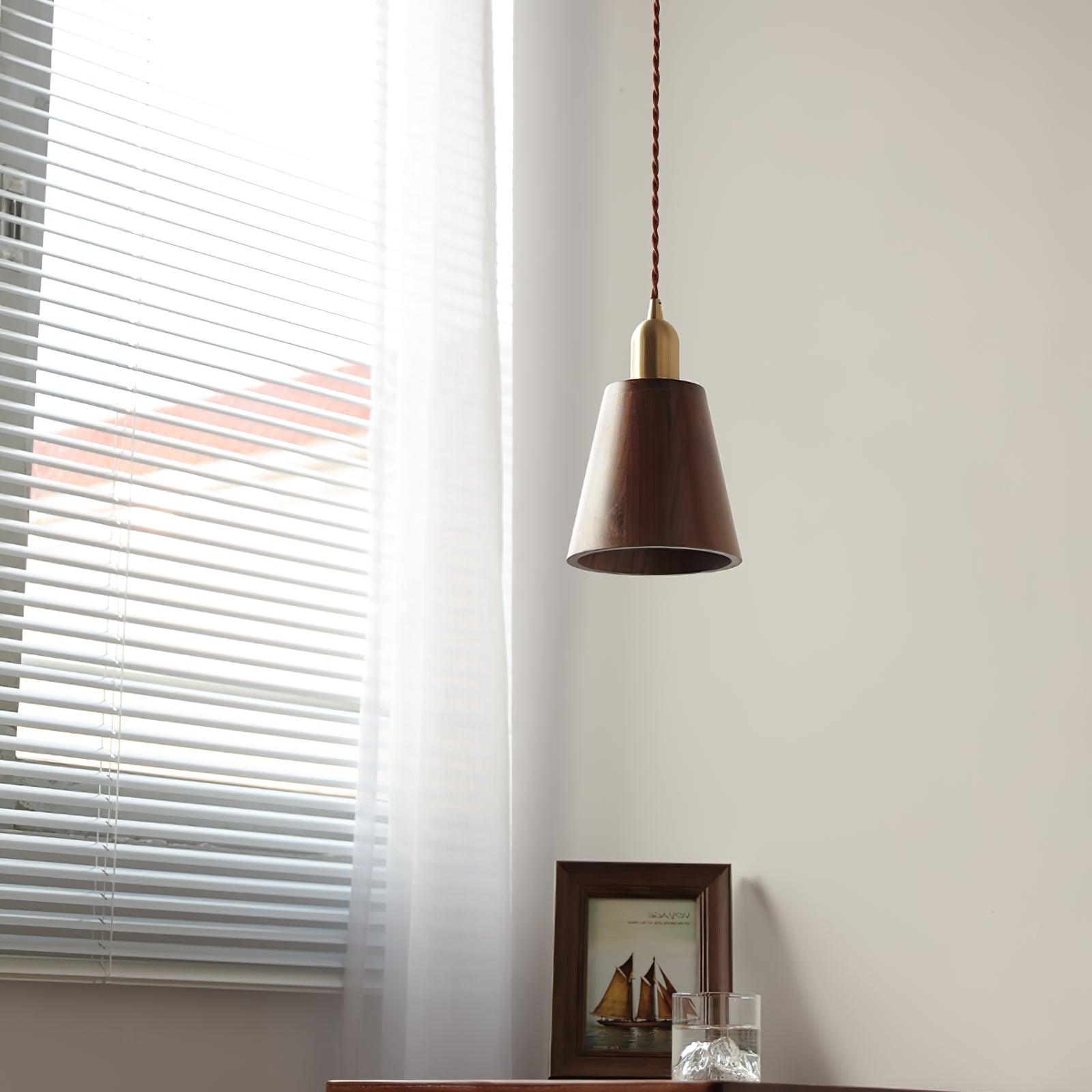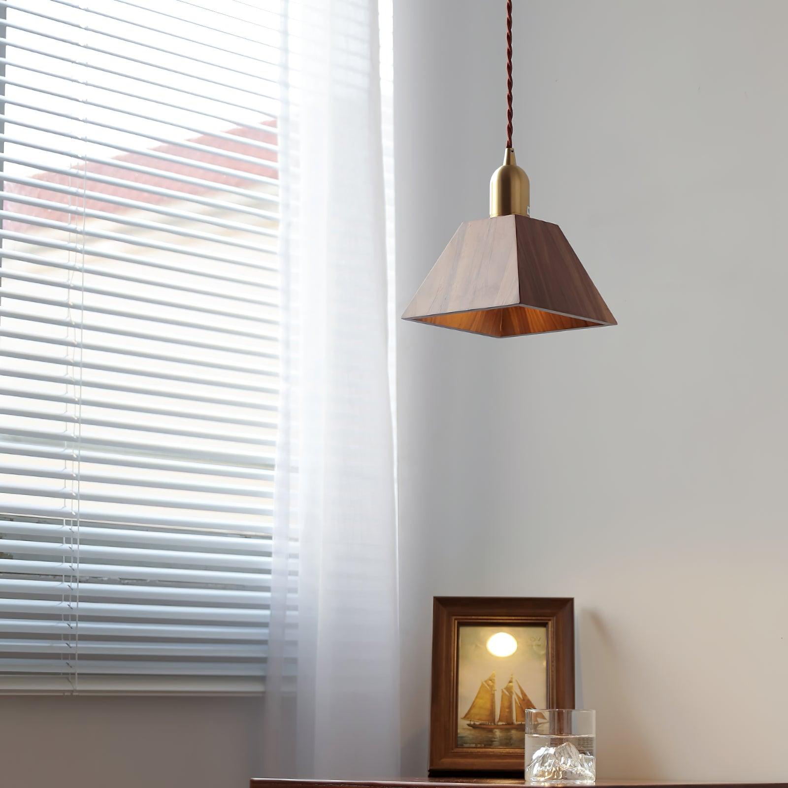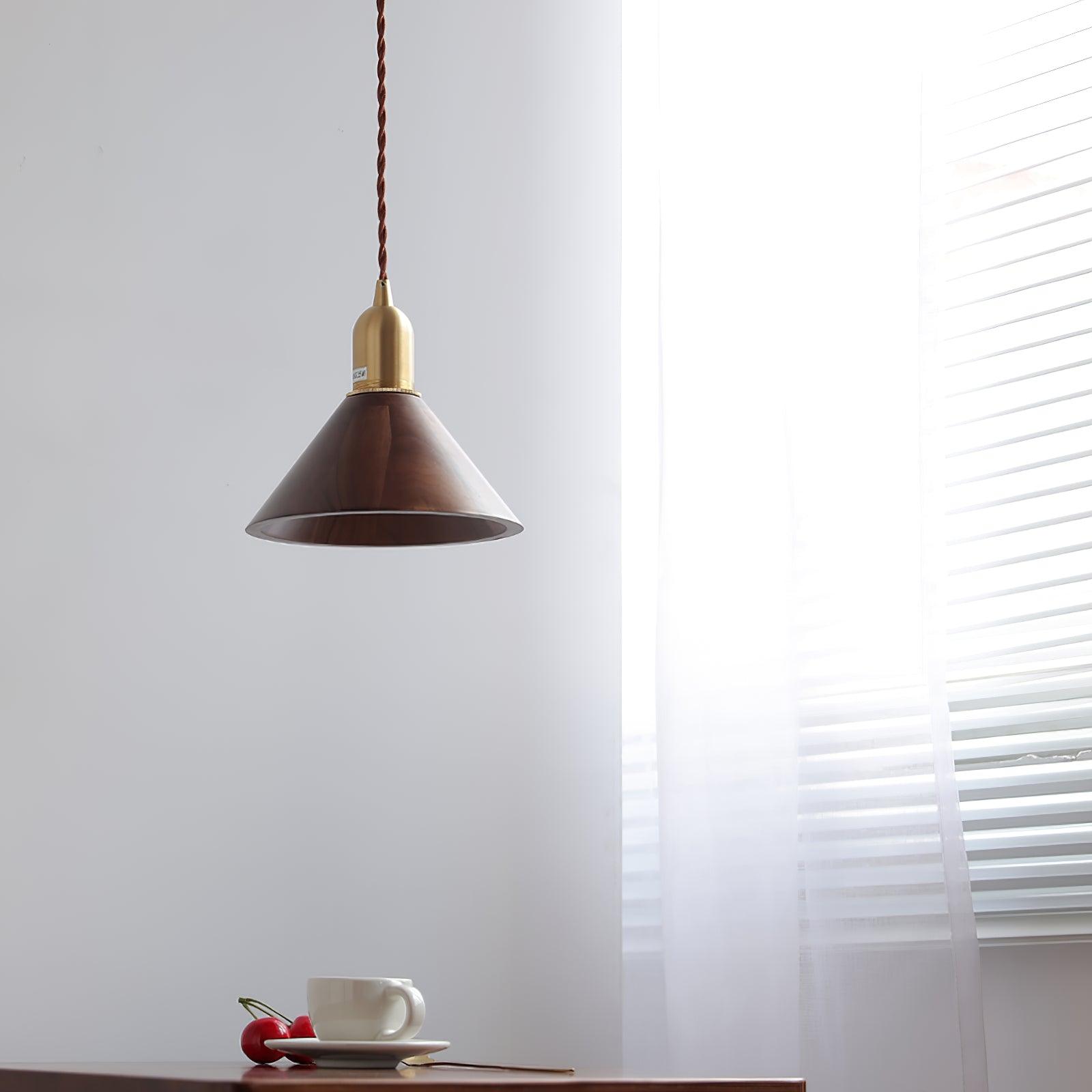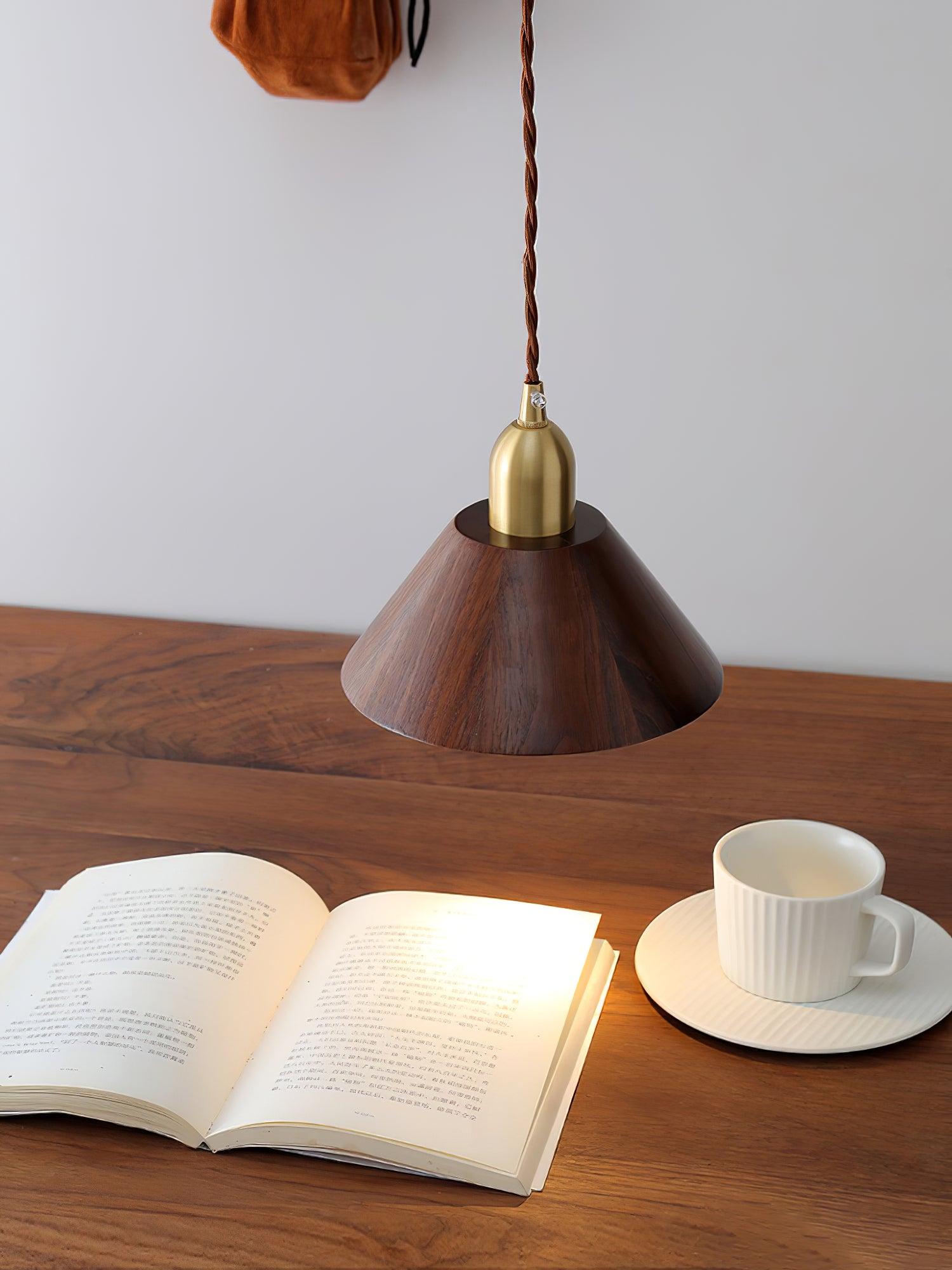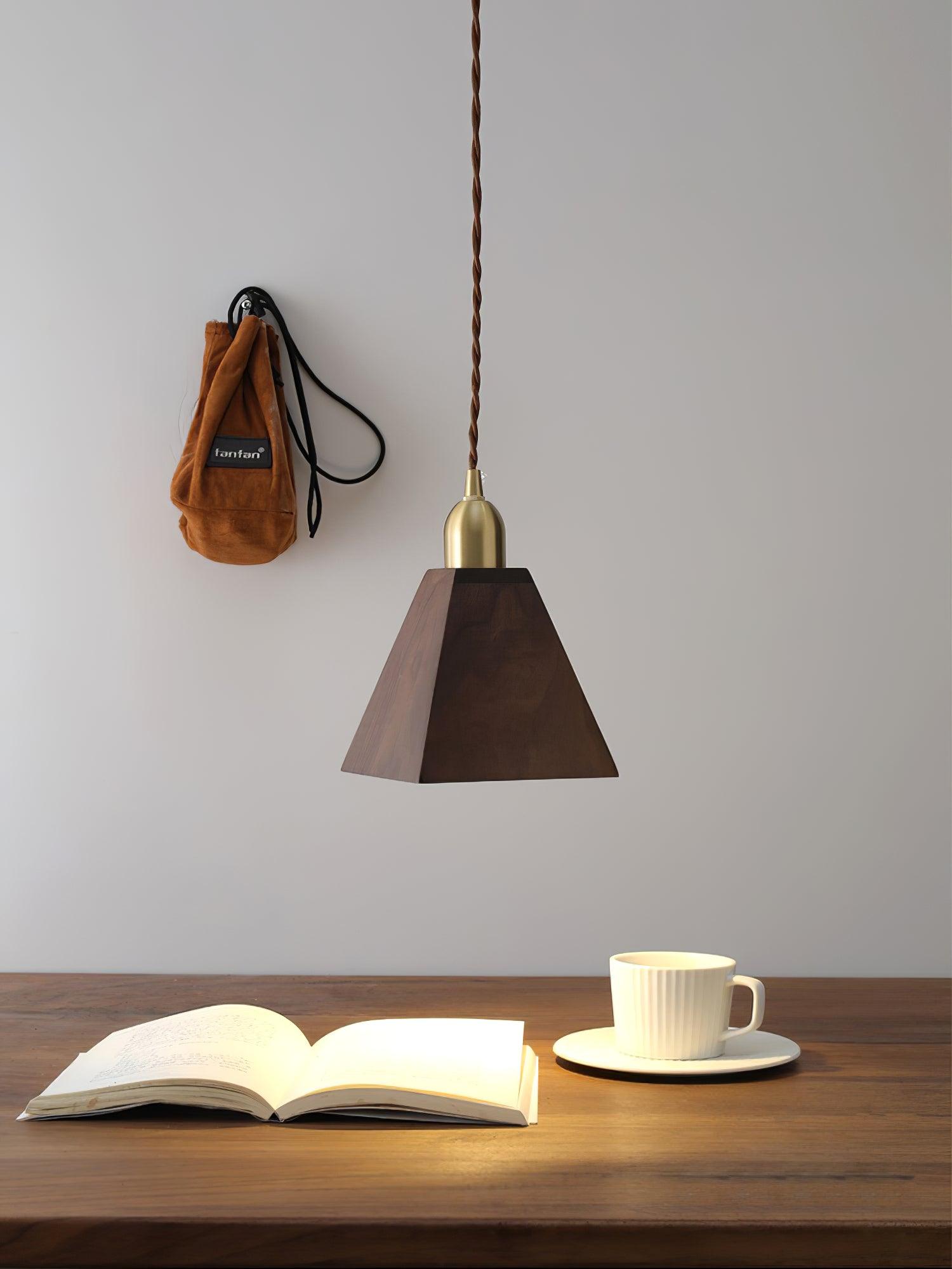 The Lustra Pendant Lamp combines walnut wood and brass for a timeless, modern design. Its sophisticated style adds warmth and elegance to living or dining room spaces, creating a refined atmosphere.