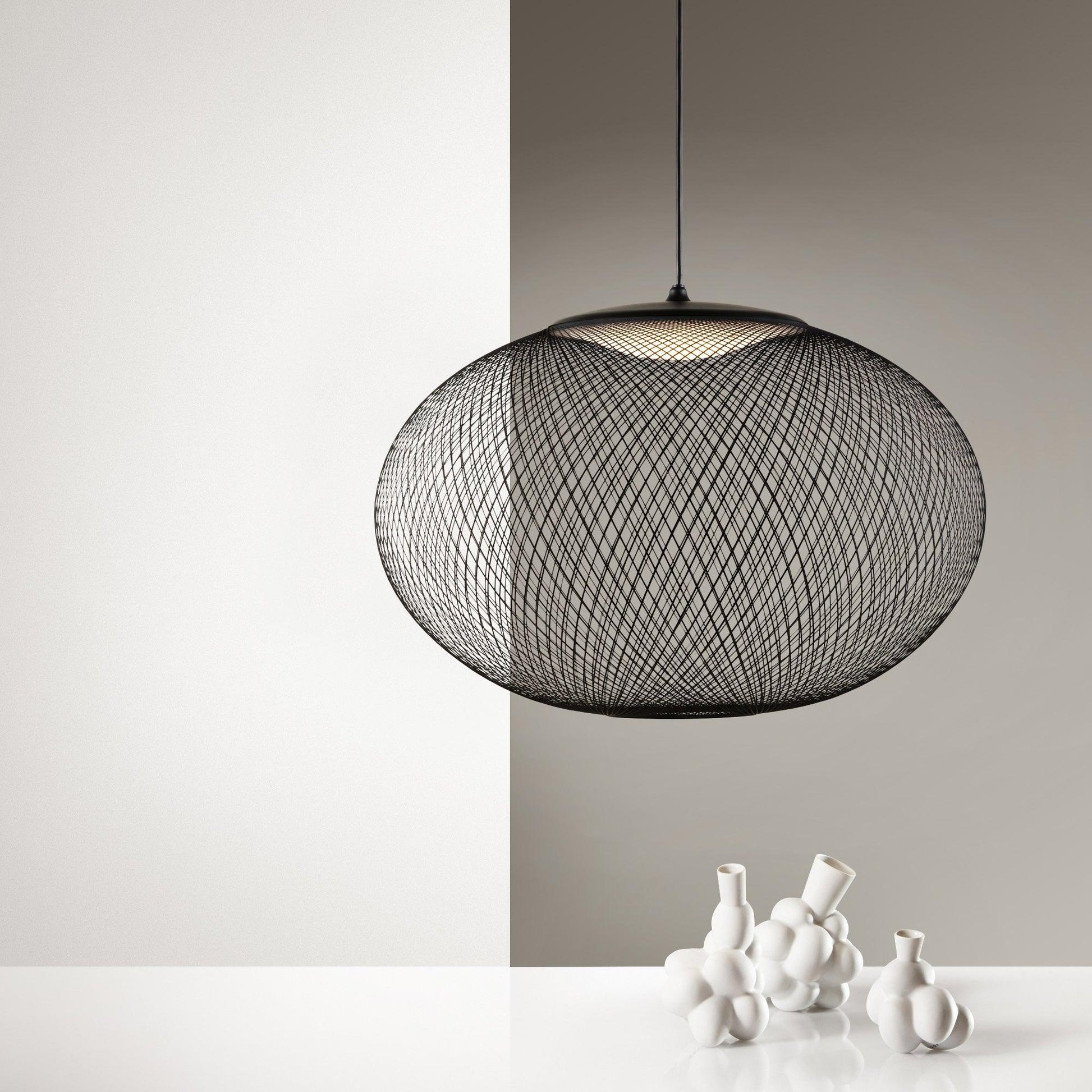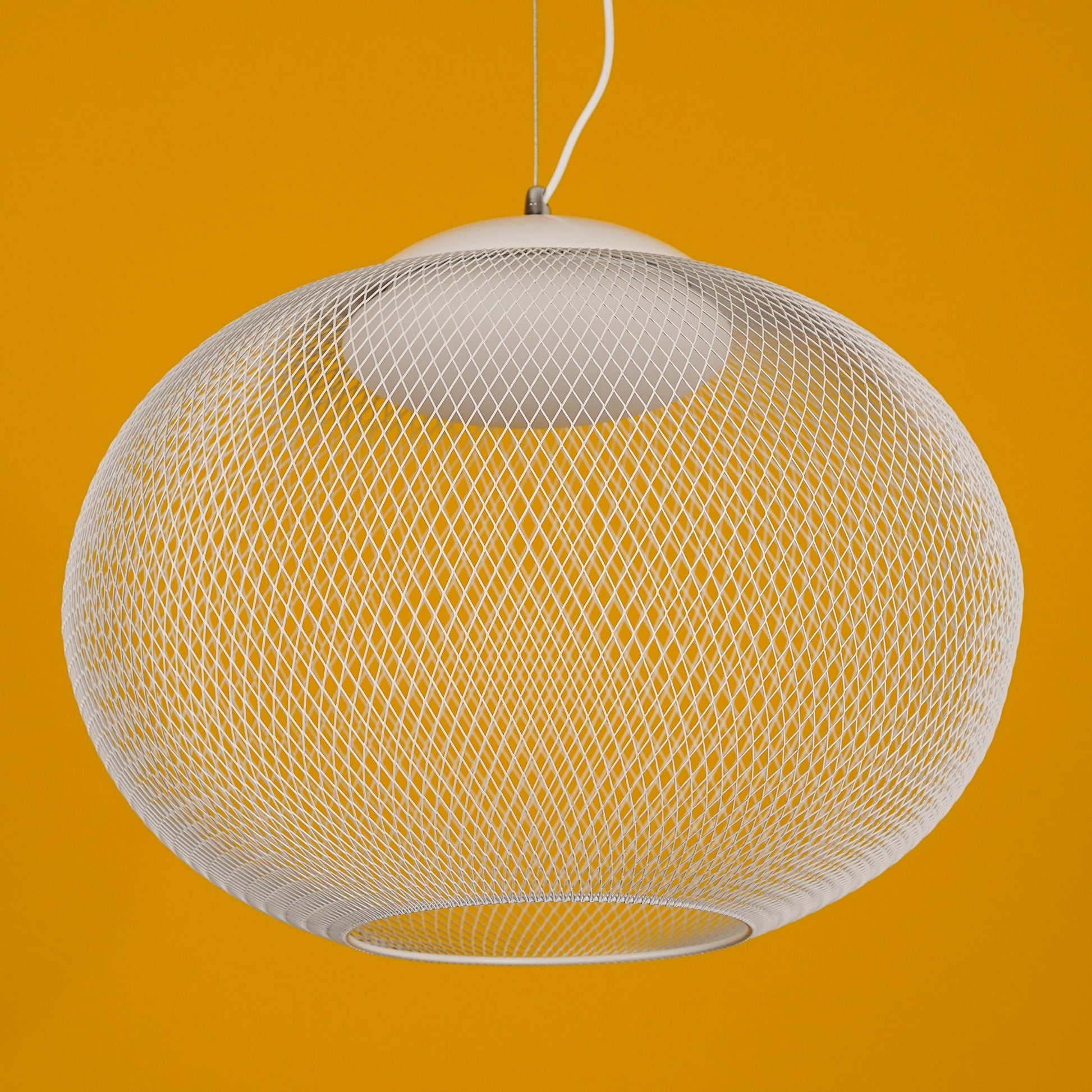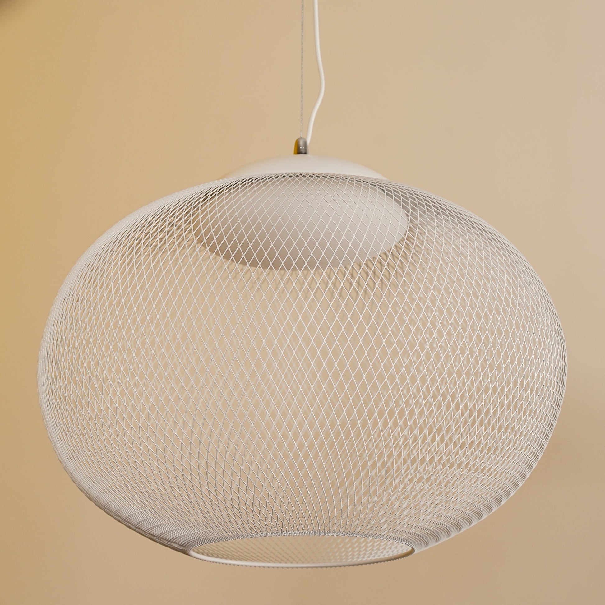 The Lustra Pendant Lamp features an intricate metallic mesh design, offering gentle diffusion of light. Perfect for adding a subtle yet stylish touch to living or bedroom spaces, with a unique black finish.