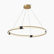 The Gold Ring Chandelier features a sleek and modern halo ring design in a gold finish, complete with integrated LED acrylic for an elegant and efficient lighting solution. The adjustable cord makes it perfect for various ceiling heights, offering versatile installation options. This contemporary chandelier is ideal for adding a refined touch to living rooms or dining areas, providing both style and functionality.