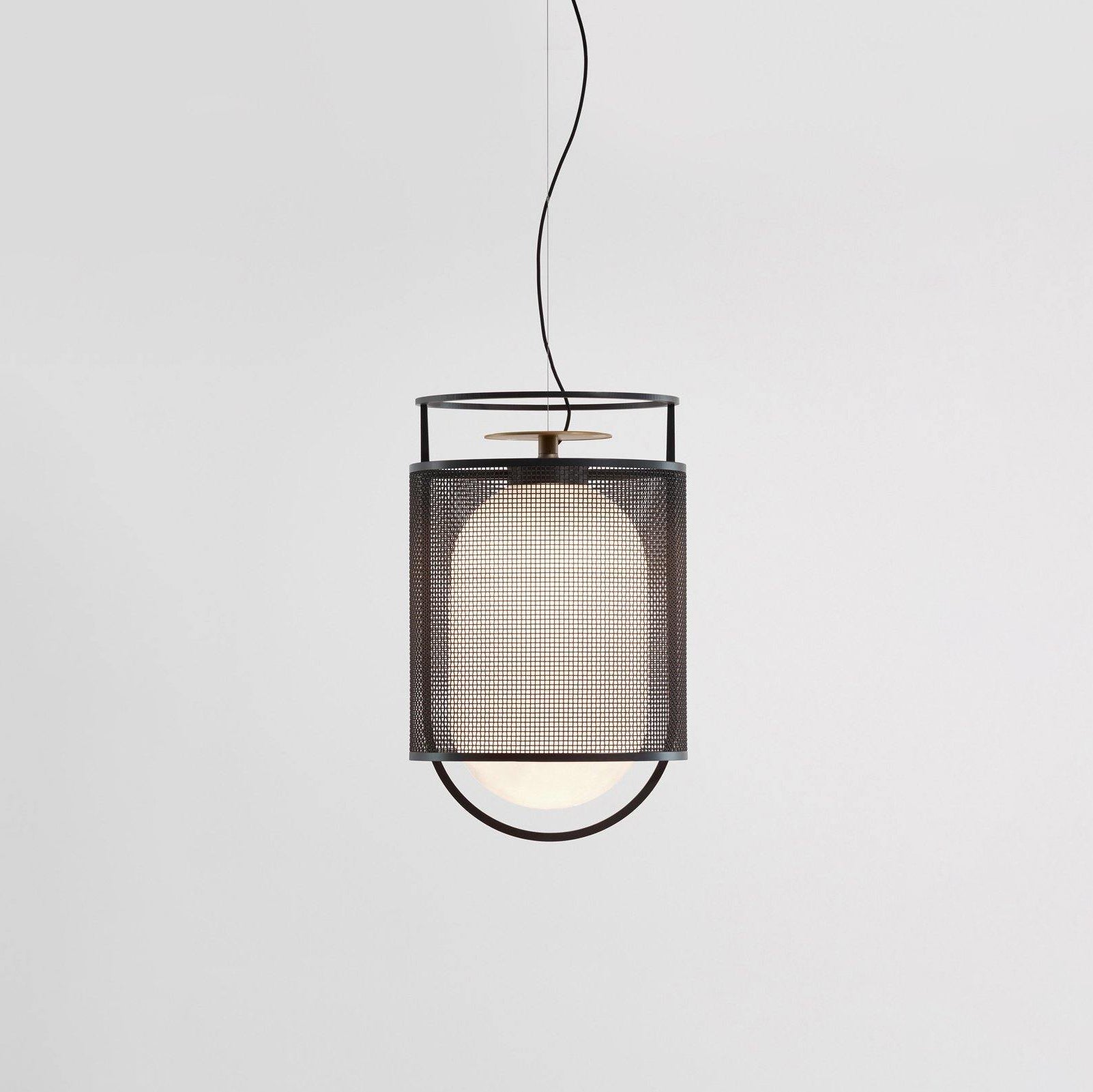 Solara Pendant Lamp Mesh Cylinder Brass Accent Industrial