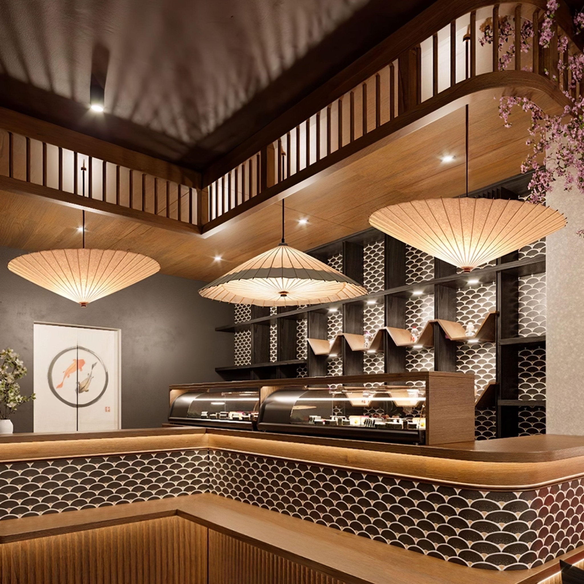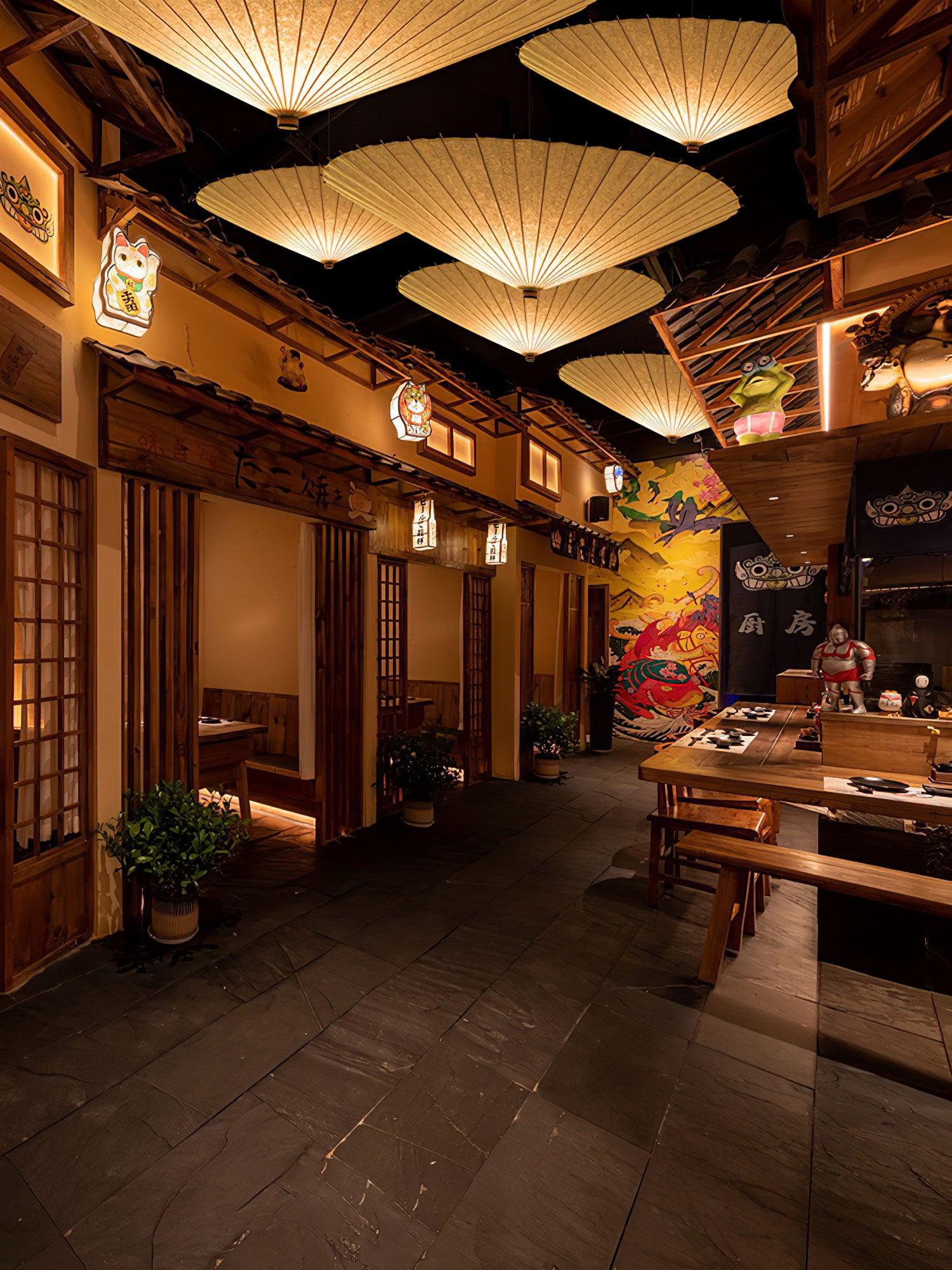 Solara Pendant Lamp Paper Umbrella Pleated Dining Room