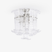 Handmade clear Murano glass panels arranged in a layered design for a modern, flush mount ceiling lamp. Perfect for bedrooms, hallways, or living spaces seeking timeless luxury and bright ambiance.