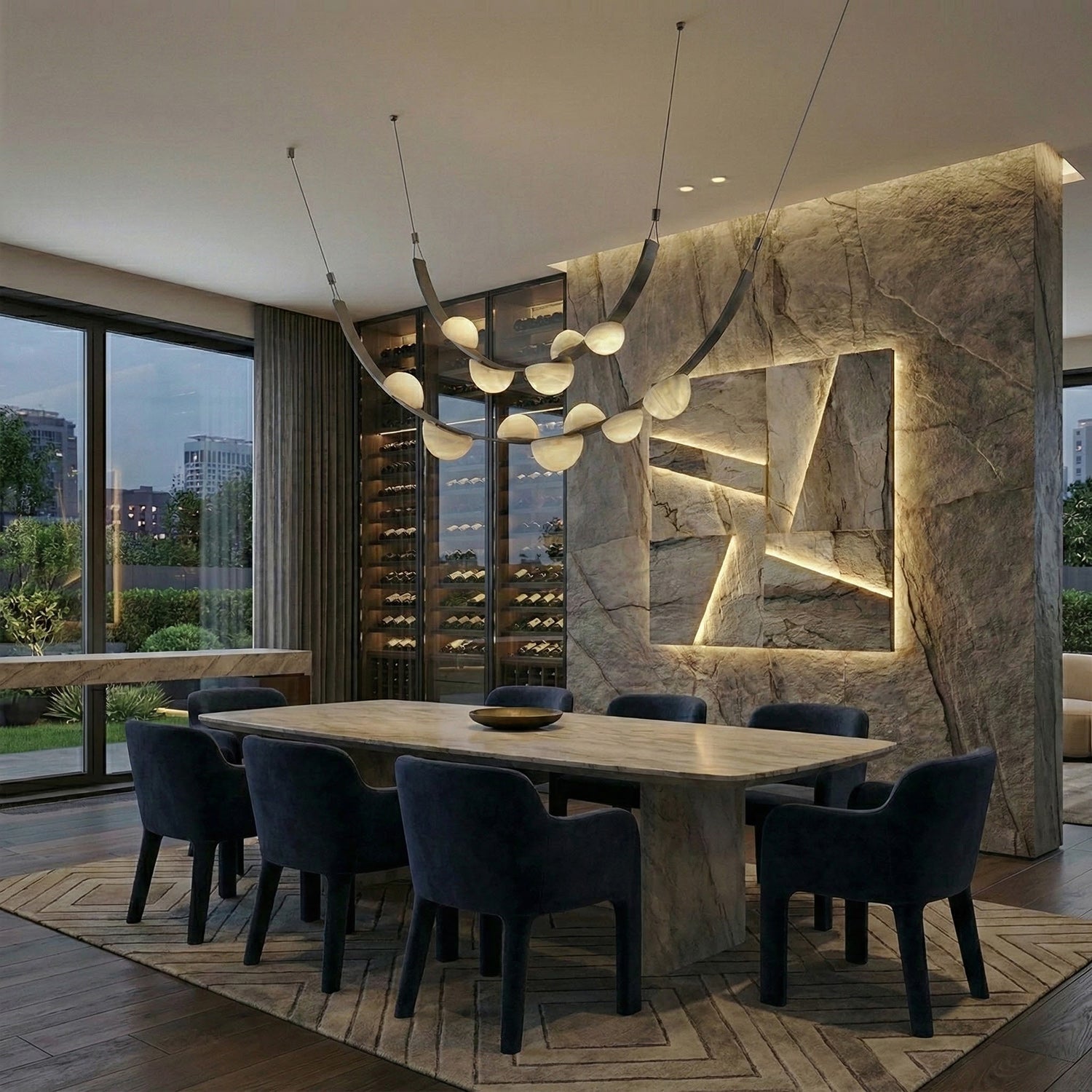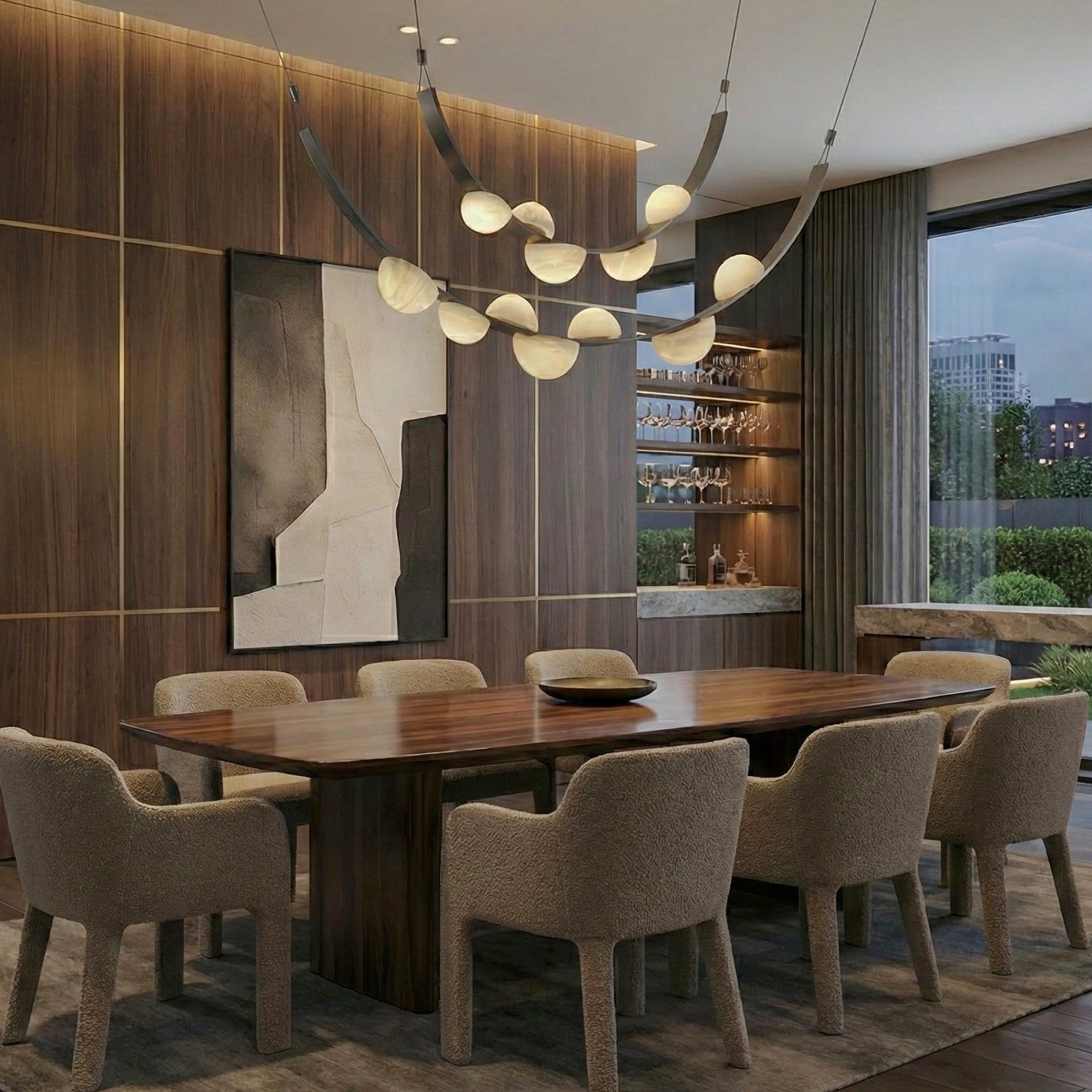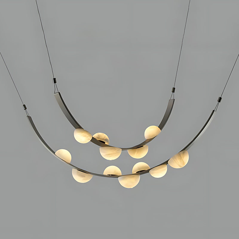- Inspired by the delicate geometry of morning dew, this alabaster chandelier merges organic form with contemporary sophistication.