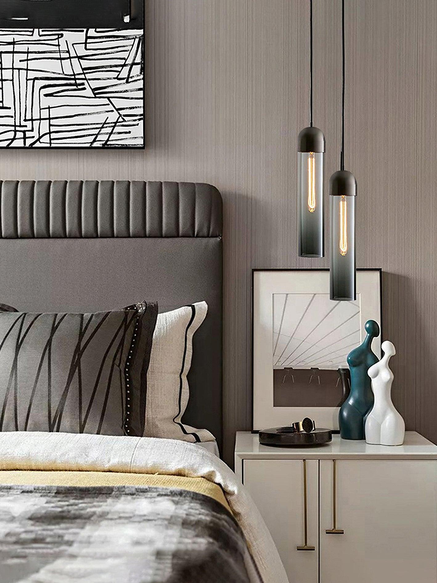 Eurcara Modern Minimalist Cylindrical Shape Metal Glass Pendant Light