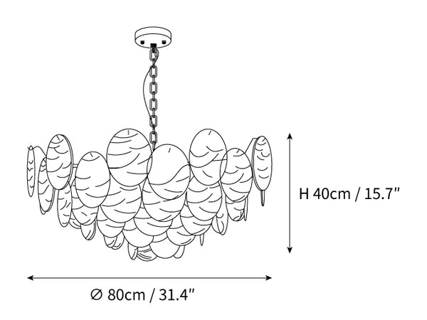 Size: Dia 80cm x H 40cm / ∅ 31.4″ x H 15.7″ (E14*12)
