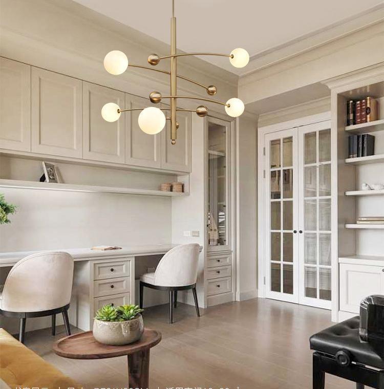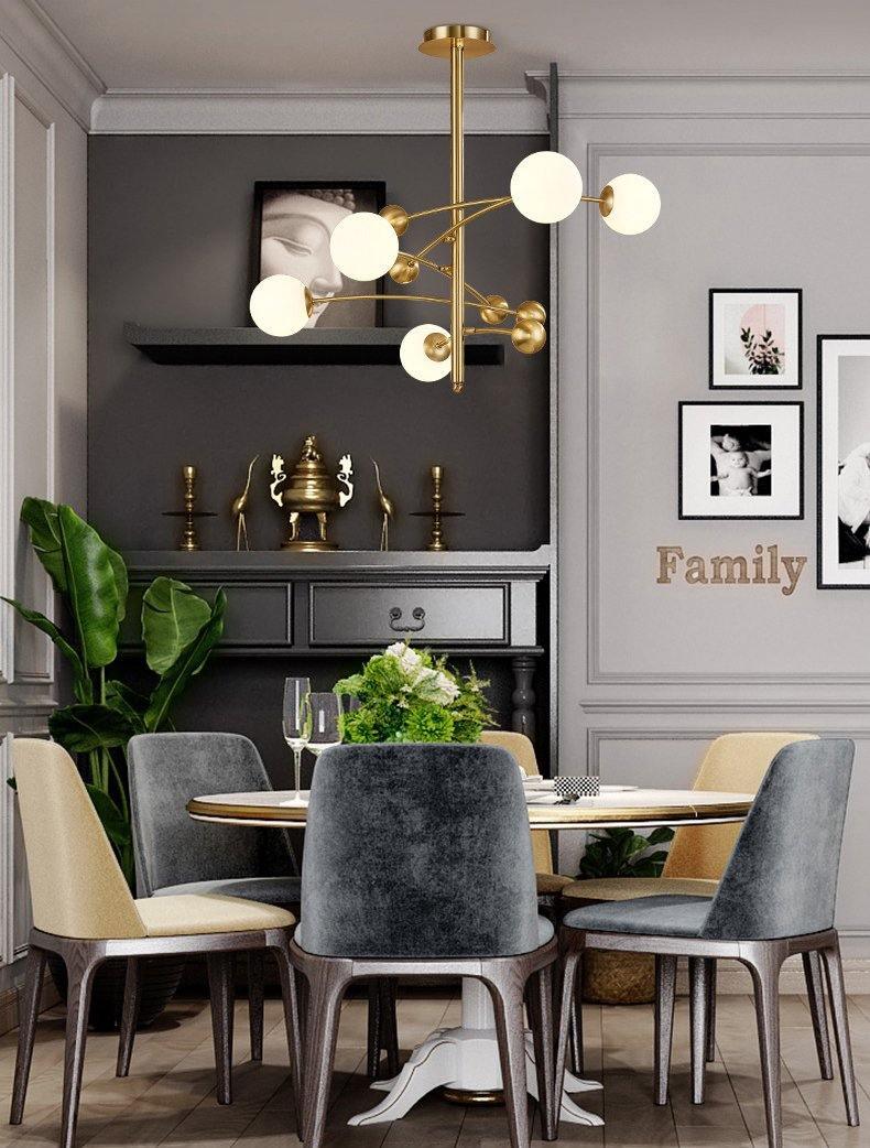 The chandelier is an elegant ensemble composed of some frosted glass bulbs attached to a solid metal lamp ring. Its elements are clearly structured. The lightweight chandelier is an excellent representative of minimalist style and can produce visual impact.