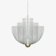 The Lamp exemplifies modern look with its Radiant Wirework. Crafted from metal wire, this chandelier is designed to provide exceptional lighting and create a play of shadows on the ceiling. Featuring an integrated LED light source, it offers warm white light (2700K) and a maximum of 30 watts. The layered steel frame shines gracefully, creating a captivating atmosphere in your living room, dining room, or foyer. This lamp's sleek design and elegant structure make it the perfect addition to any contemporary space.